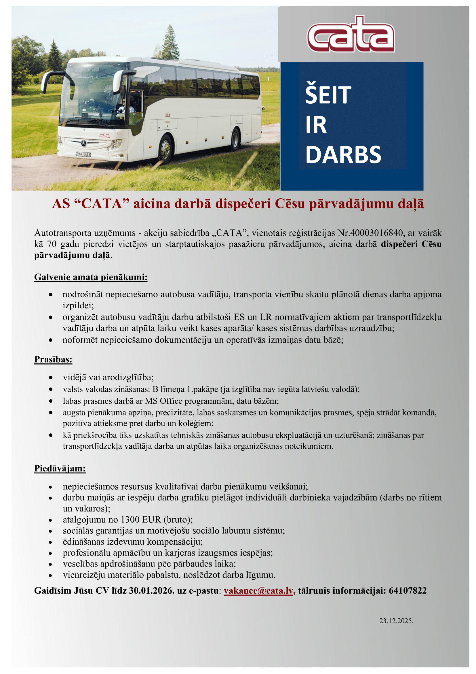 Izziņas par autobusu kustību un informāciju par sabiedriskā transporta pakalpojumu sniegšanu: